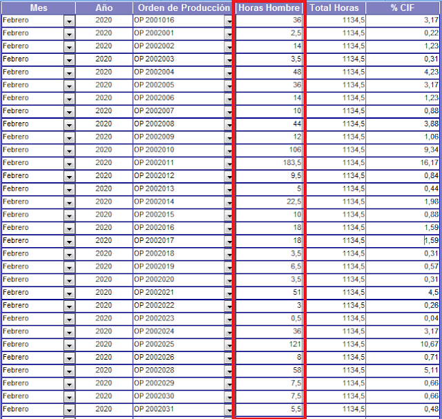 %CIF = Horas hombre / Total Horas * 100